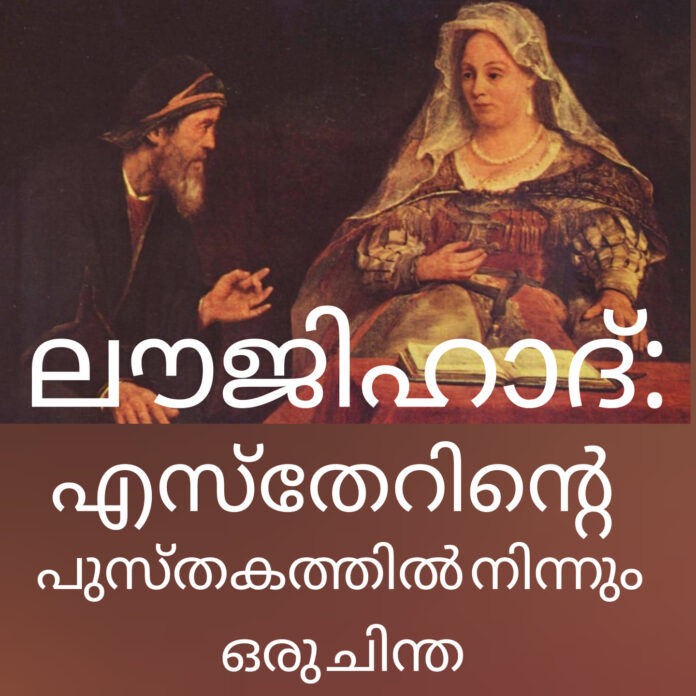 ലൗജിഹാദിന്റെ പേരില് നെഞ്ചുപൊട്ടിക്കരയുന്ന മാതാപിതാക്കളെ അപമാനിക്കുകയും അവരെ പ്രതിക്കൂട്ടില് നിര്ത്തുകയും ചെയ്യുന്നവര് ബൈബിളിലെ “എസ്തേറിന്റെ പുസ്തകം” ഒന്നു വായിക്കണം. അതില് ചിന്തോദ്ദീപകമായ ഒരു സംഭവം വിവരിക്കുന്നുണ്ട്. യഹൂദ വനിതയായ എസ്തേർ അഹശ്വേരശ് രാജാവിന്റെ രാജ്ഞിയായിരുന്നു. രാജാവു കഴിഞ്ഞാൽ പ്രധാനിയായിരുന്ന അഗാഗ്യനായ ഹാമാന് യഹൂദരെ ഉന്മൂലനം ചെയ്യുവാന് പദ്ധതി തയാറാക്കിയപ്പോള് എസ്തേറിനോട് അവളുടെ അമ്മാവനായ മോര്ദേഖായി പറയുന്ന ഒരു കാര്യമുണ്ട്.