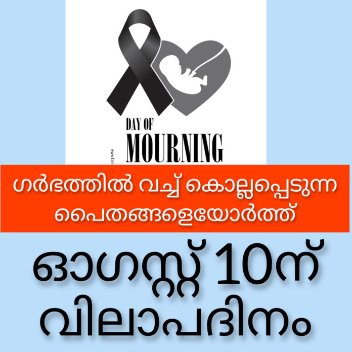 ഗർഭസ്ഥ ശിശുവിനെ നശിപ്പിച്ചു കളയാൻ സ്വതന്ത്ര ഭാരതം നിയമം നടപ്പാക്കിയിട്ട് 50 ആണ്ടുകളാകുന്നു. 1971 ഓഗസ്റ്റ് 10 മുതൽ ഗർഭപാത്രത്തിൽ വച്ചു തന്നെ കൊല്ലപ്പെട്ട ലക്ഷക്കണക്കിന് കുഞ്ഞുങ്ങളുടെ ഓർമകൾക്കു മുന്നിൽ മനുഷ്യസ്നേഹികൾ മെഴുകുതിരികൾ കത്തിച്ച് കണ്ണീർ വാർക്കുന്ന ദിനം. ജീവൻ്റെയും മരണത്തിൻ്റെയും വാദപ്രതിവാദങ്ങൾക്കൊടുവിൽ, പിറന്നു വീഴാൻ അനുവാദമില്ലാതെ ജീവനിൽ നിന്ന് നിഷ്കാസിതരാകേണ്ടിവന്ന പൈതങ്ങളെയോർത്ത് നിശ്ശബ്ദമായി കണ്ണീരൊഴുക്കുന്നവരുടെ ദിനമാണത്!