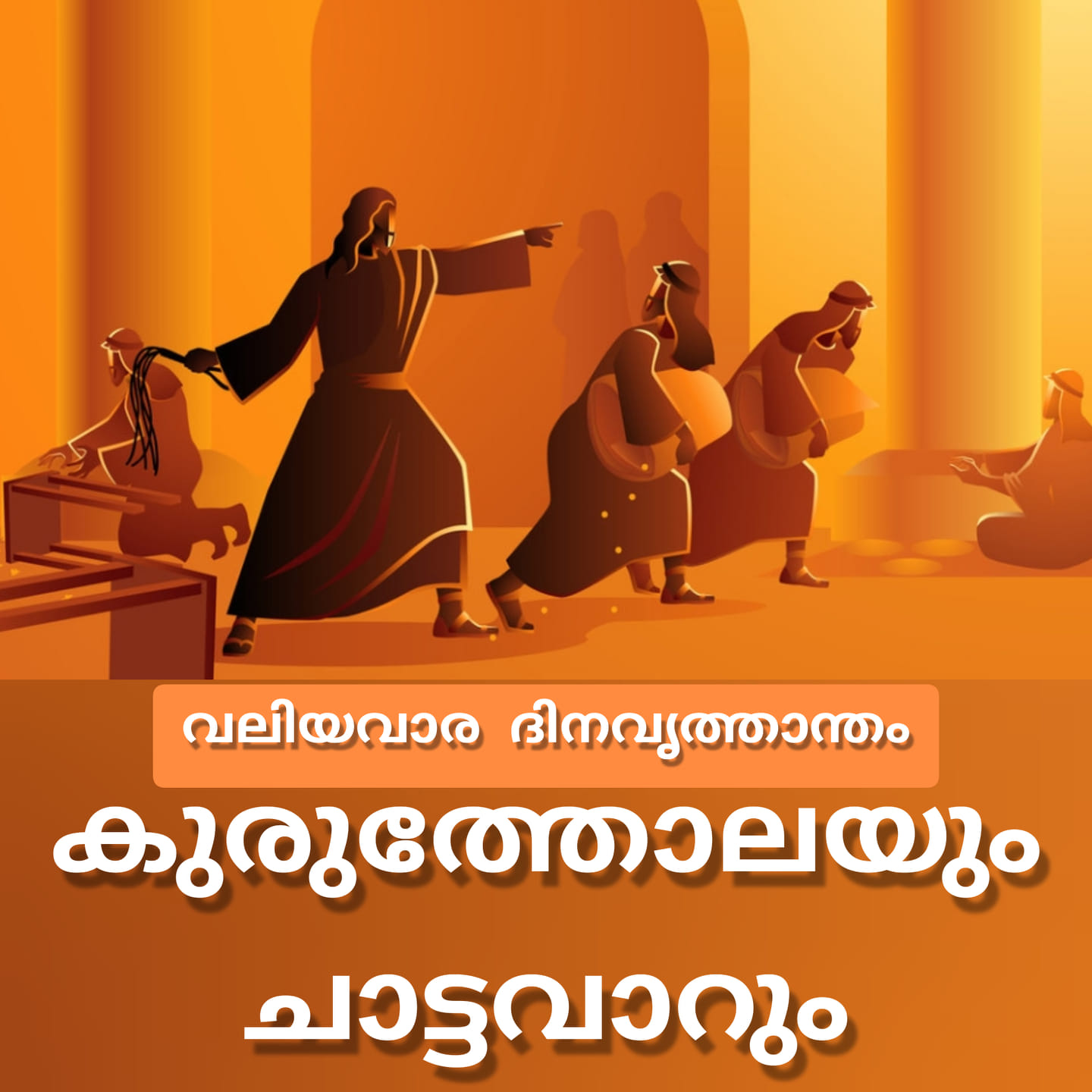 ഓശാന ഞായറില് വാസ്തവത്തില് രണ്ട് മഹാസംഭവങ്ങളാണ് യേശുക്രിസ്തുവിന്റെ ജീവിതത്തില് ഉണ്ടായത്. അതില് ഒന്നാണ് ജെറുസലേമിലേക്കുള്ള രാജകീയ പ്രവേശനം. എന്നാല് പൊതുവില് ആരും സംസാരിക്കാത്തതോ ചര്ച്ചാവിഷയമാക്കാത്തതോ ആയ മറ്റൊരു സംഭവം ഇതേദിവസം ഉണ്ടായി. അത് “ദേവാലയ ശുദ്ധീകരണം” എന്ന പേരില് ലൂക്കോസ് 19:45ലും മത്തായി 21:12ലും രേഖപ്പെടുത്തിയിരിക്കുന്നു. രാജകീയ പ്രവേശനം കഴിഞ്ഞ് തൊട്ടടുത്ത നിമിഷം സംഭവിച്ചതാണത്.