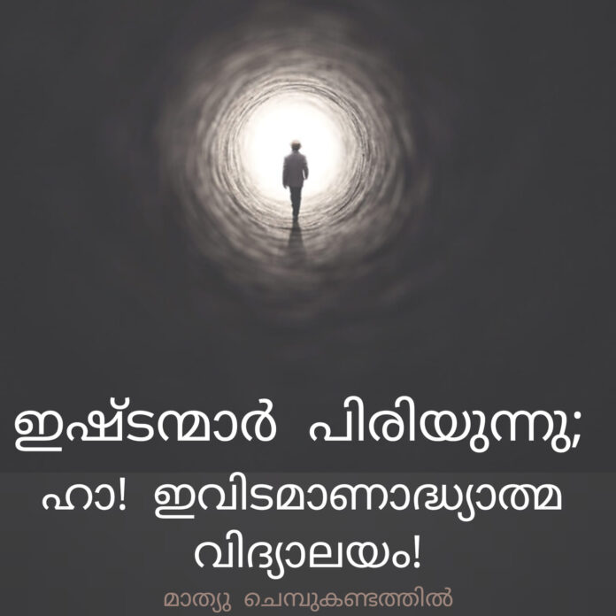 Homeചിന്തകൾഇഷ്ടന്മാര്‍ പിരിയുന്നു; ഹാ! ഇവിടമാണാദ്ധ്യാത്മ വിദ്യാലയം!