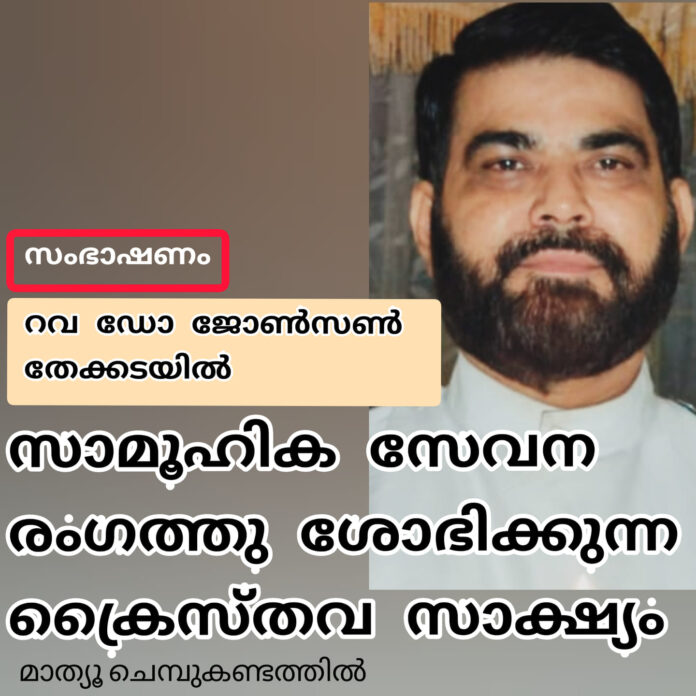 ക്രൈസ്തവ ദൈവശാസ്ത്രത്തിൽ ബിരുദാനന്തര ബിരുധവും, സാമൂഹികശാസ്ത്രത്തിൽ ഡോക്ടറേറ്റും കരസ്ഥമാക്കി മലബാർ മേഖലയിലെ ജനങ്ങളുടെ ആത്മീകവും, സാമൂഹികവുമായ സമഗ്ര പുരോഗതിക്കുവേണ്ടി ജീവിതം സമര്പ്പിച്ചിരിക്കുന്ന ഈ വൈദീകൻ “ഇവാഞ്ചലിക്കല് ചര്ച്ച് ഓഫ് ഇന്ത്യ”യിലെ ഒരു പട്ടക്കാരനാണ്. “മലബാർ ബൈബിൾ ഫെലോഷിപ്പി”നോടെ ചേർന്ന് മലപ്പുറം ജില്ലയിലെ നിലമ്പൂരിൽ താമസിച്ച് പ്രവർത്തിക്കുന്നു. എല്ലാ ക്രിസ്തീയ സഭകളുടെയും കൂട്ടായ്മയായ “എക്ളേസ്യ യുണൈറ്റഡ് ഫോറം” എന്ന സംഘടനയുടെ ചെയർമാൻ എന്ന നിലയിൽ സഭൈക്യ പ്രവർത്തനങ്ങൾക്ക് മുമ്പന്തിയിൽ നിൽക്കുന്ന റവ. ജോൺസൺ തേക്കടയിലുമായി നടത്തിയ സംഭാഷണത്തിലെ പ്രസക്തഭാഗങ്ങൾ ചുവടെ.