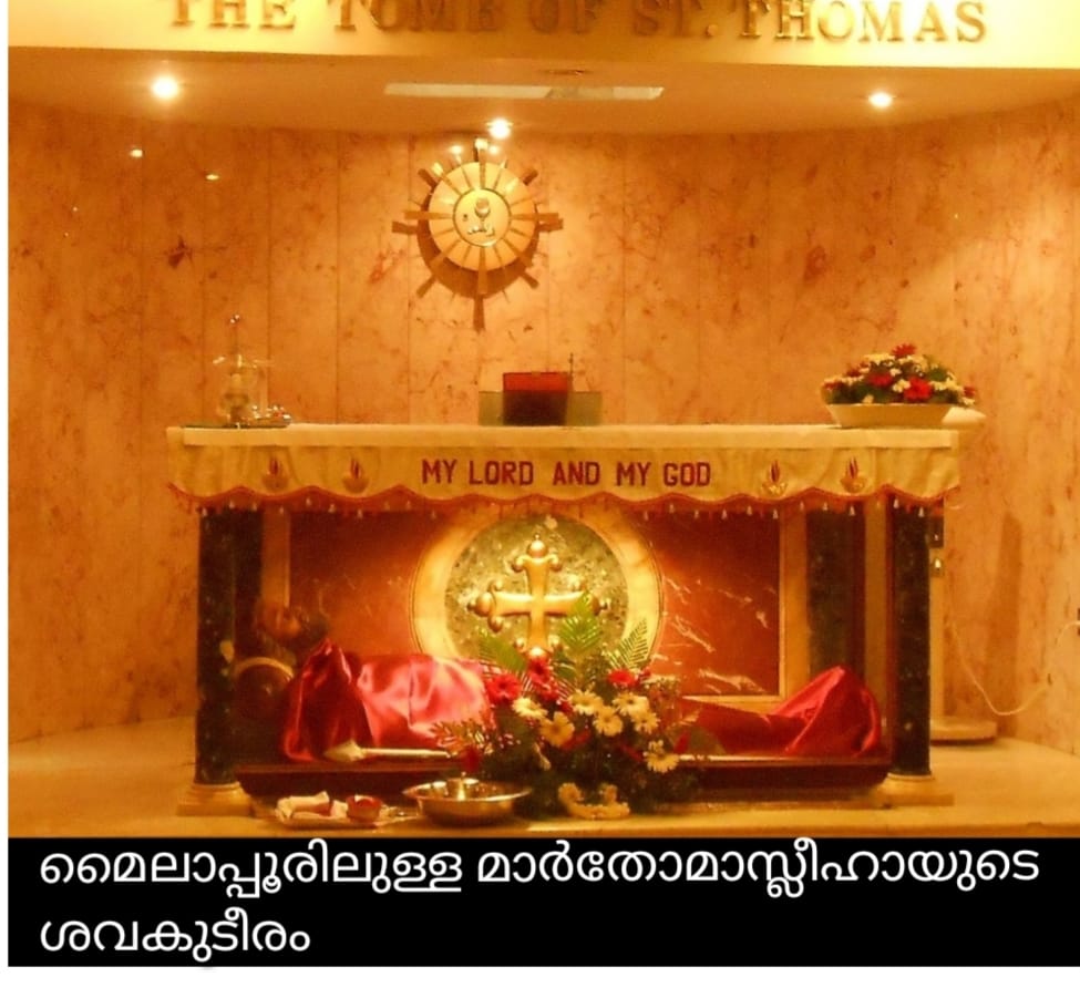തോമാസ്ലീഹായുടെ മൈലാപ്പൂരിലുള്ള കബറിടം അദ്ദേഹത്തിന്റെ ഭാരതപ്രവേശനത്തിനും പ്രവര്ത്തനങ്ങള്ക്കും ശക്തമായ തെളിവുകളാണ് നല്കുന്നത്. (അവലംബം: തിരുസ്സഭാ ചരിത്രം)