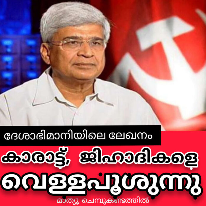 സിപിഐ(എം) മുൻ അഖിലേന്ത്യാ ജനറൽ സെക്രട്ടറി സഖാവ് പ്രകാശ് കാരാട്ട് “കേരളത്തിൽ വർഗീയ ചേരിതിരിവ‍് അരുത്‌” എന്ന തലക്കെട്ടിൽ സെപ്റ്റംബർ 24ന് ദേശാഭിമാനി ദിനപ്പത്രത്തിൽ ഒരു ലേഖനമെഴുതി. പാലാ രൂപതാധ്യക്ഷൻ മാർ ജോസഫ് കല്ലറങ്ങാട്ടിന്‍റെ പ്രസംഗത്തെ വിമർശിച്ചായിരുന്നു ലേഖനം. ജിഹാദികൾക്ക് വേണ്ടി വാദിക്കാൻ കമ്യൂണിസ്റ്റ് പാർട്ടിയുടെ ഉന്നത നേതാവു തന്നെ രംഗത്തു വരുന്ന ഭയാനകമായ കാഴ്ചയാണ് പ്രസ്തുത ലേഖനത്തിൽ കാണാൻ കഴിഞ്ഞത്