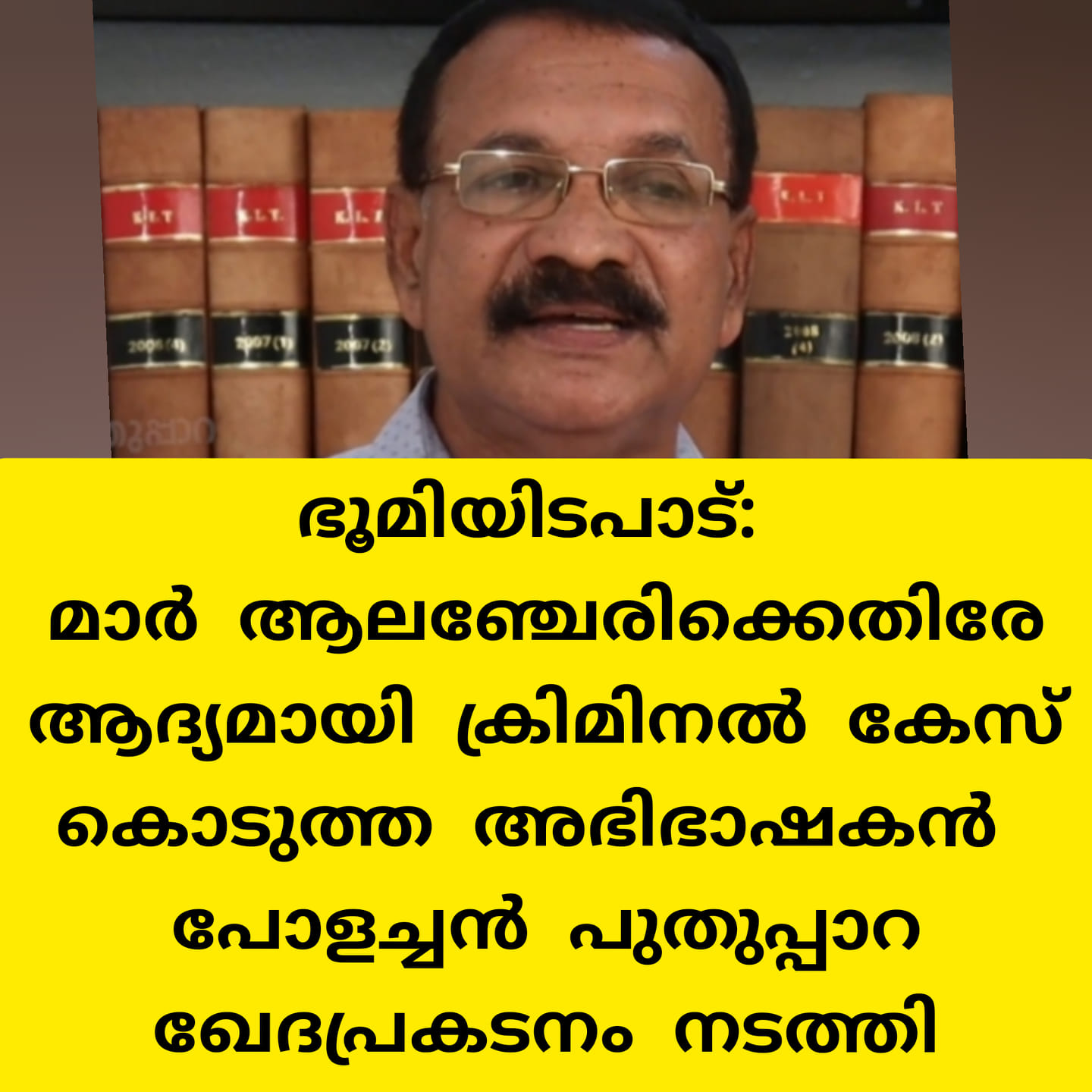 എറണാകുളം അങ്കമാലി അതിരൂപതയുടെ ഭൂമിയിടപാടിൽ കർദിനാൾ ആലഞ്ചേരിക്കെതിരേ ആദ്യമായി ക്രിമിനൽ കേസ് കൊടുത്ത അഭിഭാഷകൻ അഡ്വ പോളച്ചൻ പുതുപ്പാറ ഖേദപ്രകടനവുമായി രംഗത്ത്. വിമത വൈദികർ സാമൂഹിക മാധ്യമങ്ങളിലൂടെ പുറത്തുവിട്ട വിവരങ്ങളുടെ അടിസ്ഥാനത്തിലാണ് അദ്ദേഹത്തിനെതിരേ താൻ ആദ്യമായി കേസു കൊടുത്തതെന്നും അതിൽ തനിക്ക് ദുഃഖമുണ്ടെന്നും അദ്ദേഹം പറഞ്ഞു. തൻ്റെ യൂട്യൂബ് ചാനലിൽ പോസ്റ്റ് ചെയ്ത വീഡിയോയിലൂടെയാണ് അദ്ദേഹം തന്റെ നിലപാട് മാറ്റം അറിയിച്ചത്.